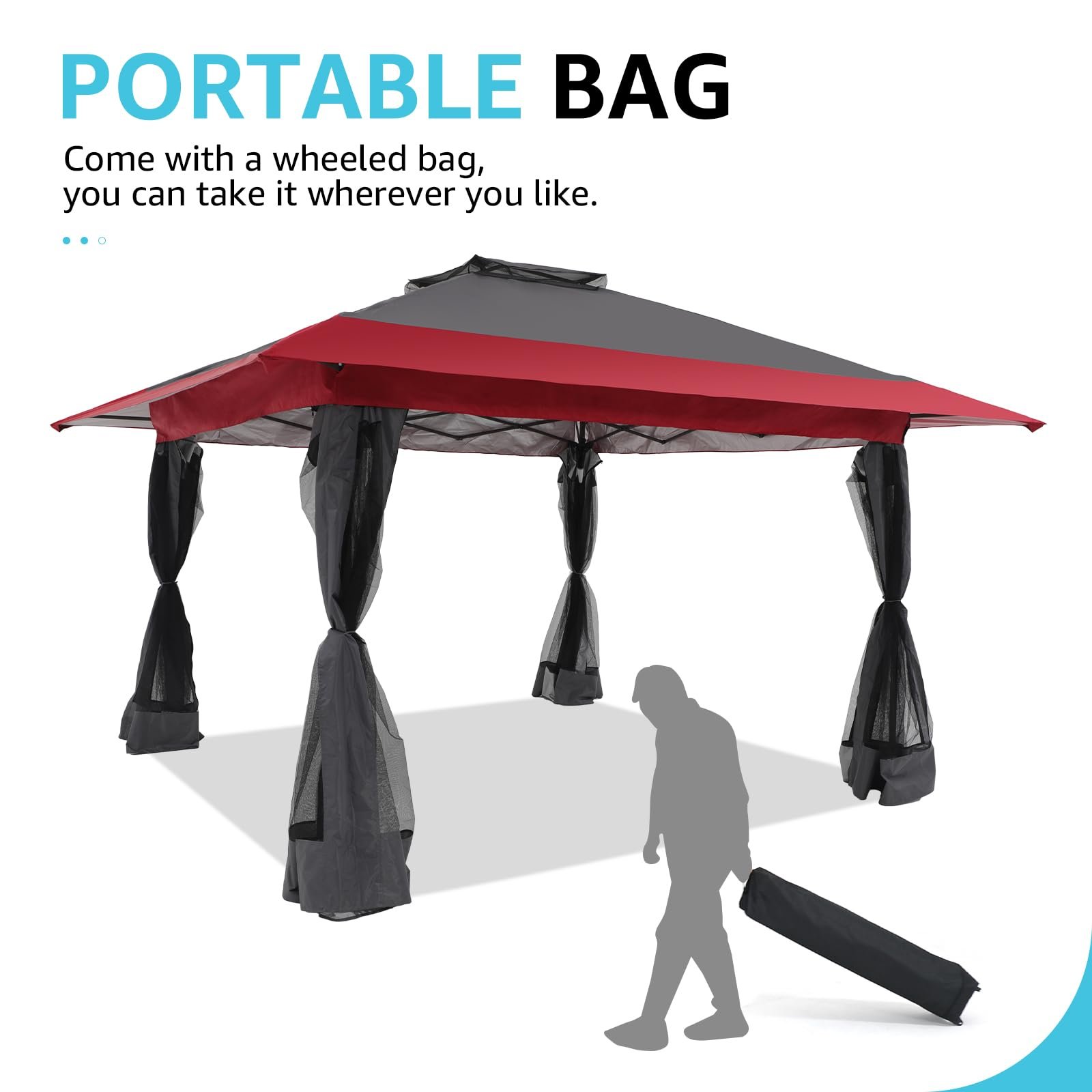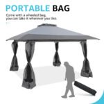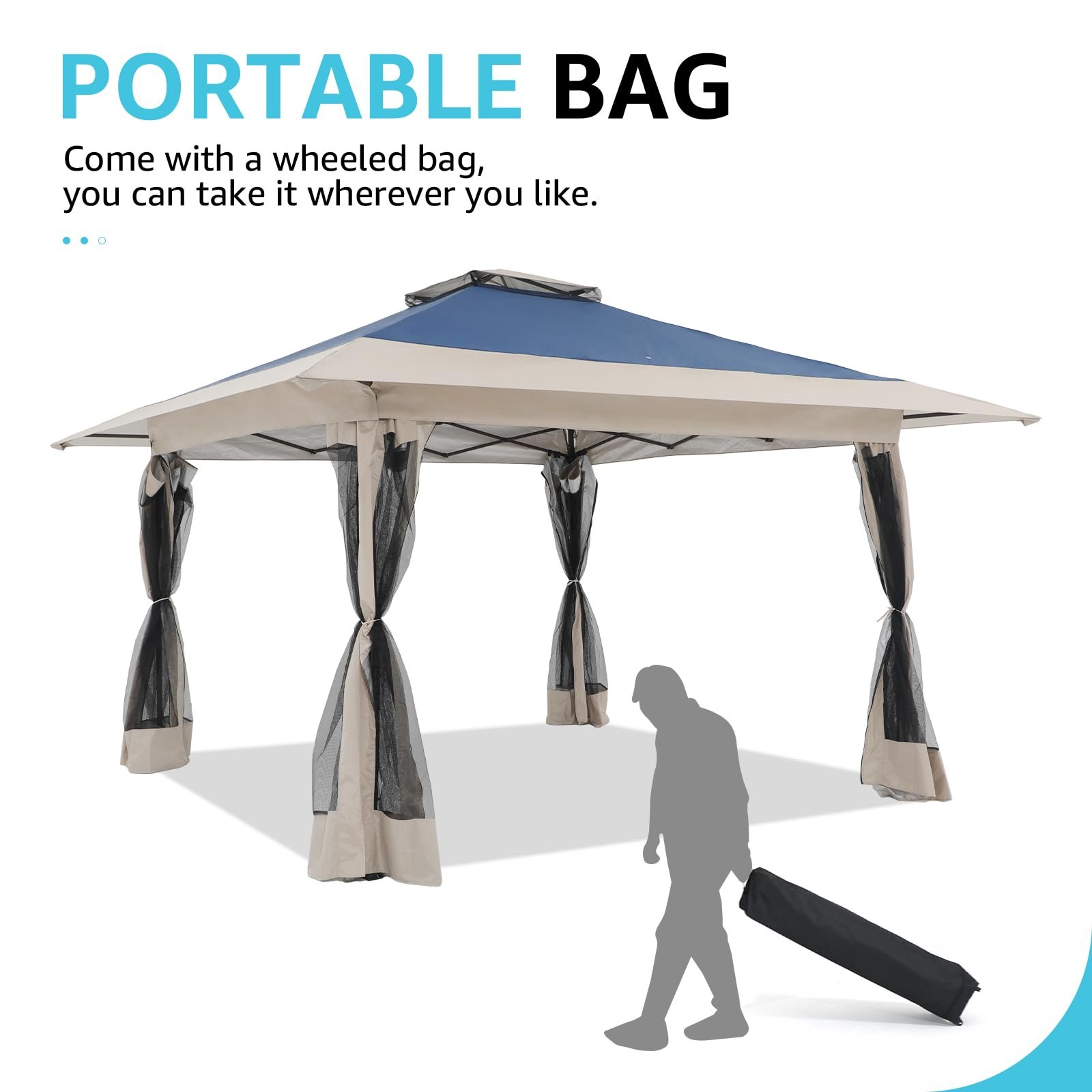 - Portable & Large Shade-With in a wheeled carry bag, this patio gazebo is portable and lightweight for you to take it anywhere. The shadow coverage of the gazebo tent is 13x13ft, provides 169 square feet of coverage, and can accommodate 6-10 people for parties and activity