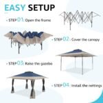- Easy Setup & Wide Use-Setup is efficient and hassle-free, including all the necessaries and instructions, it’s easy installation and disassembly. This spacious gazebo is suitable for the home garden, playground, party, activities, camping, backyard events, etc.