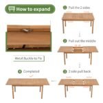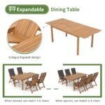 7 pcs Outdoor Wood Dining Set, Extendable Rectangular Table and 6 Stackable Chairs