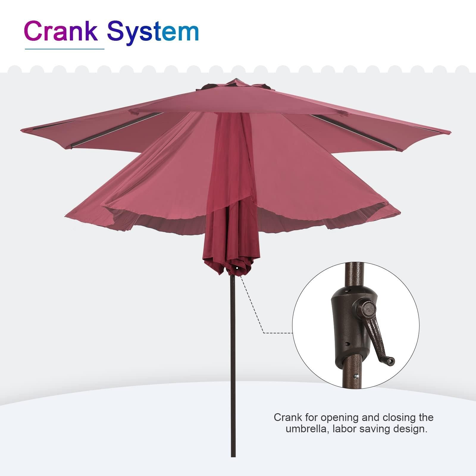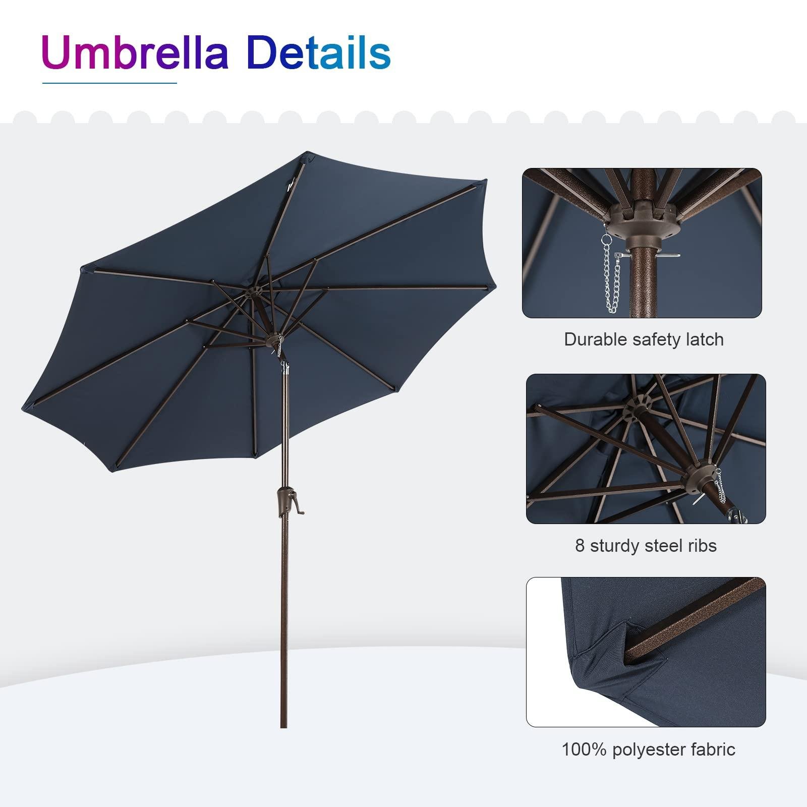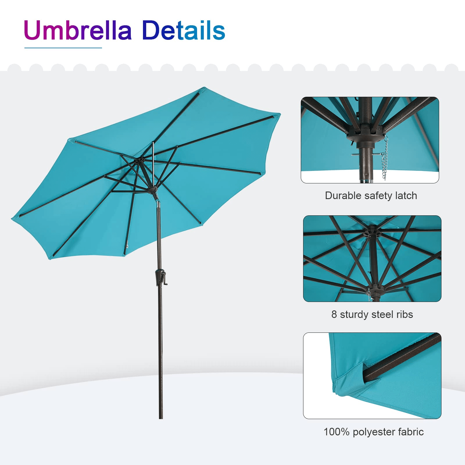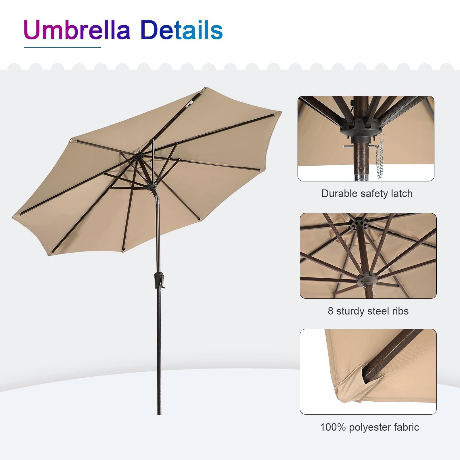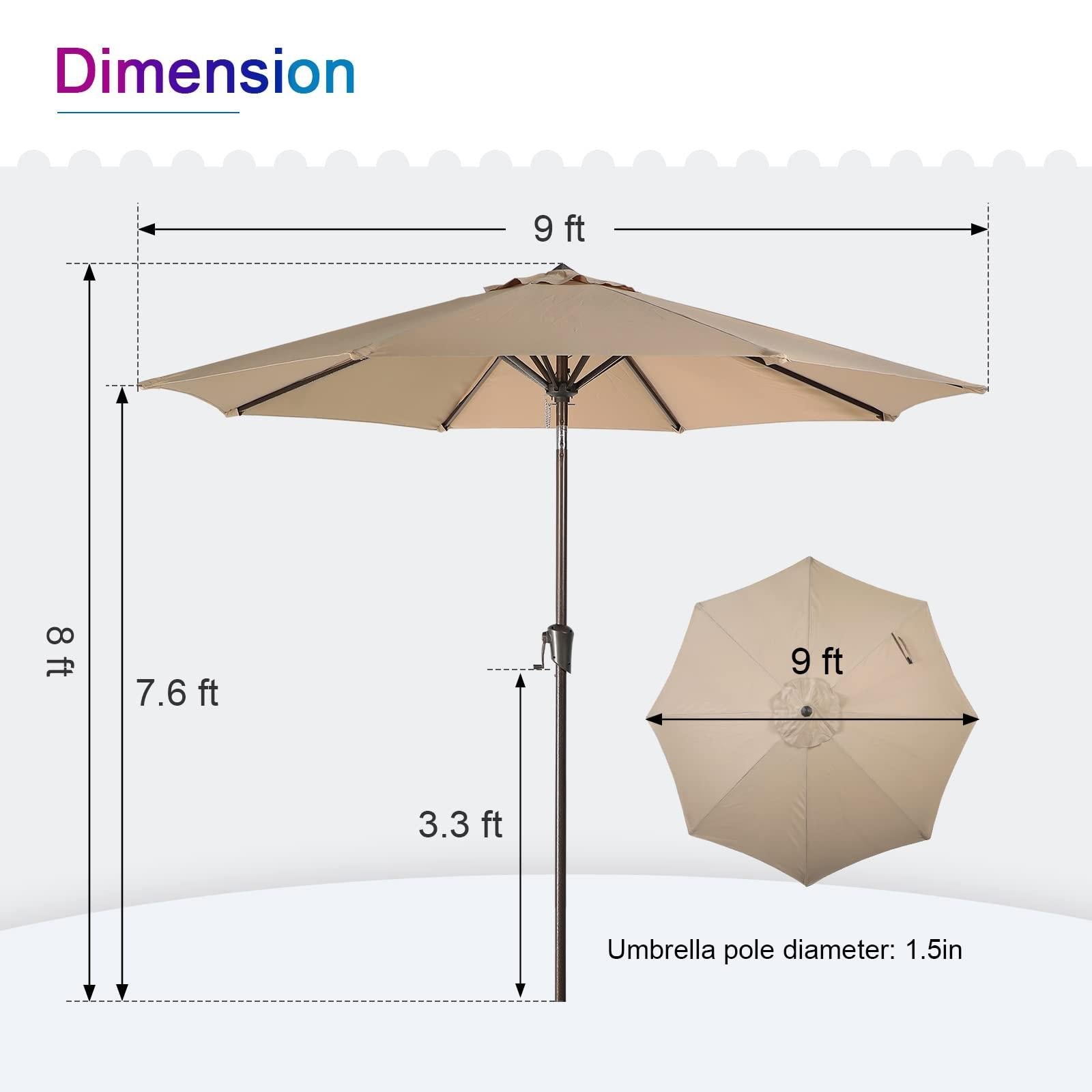 9ft Round Patio Umbrella, Polyester 8 Steel Ribs Large Table Market Umbrella, 5 Colors