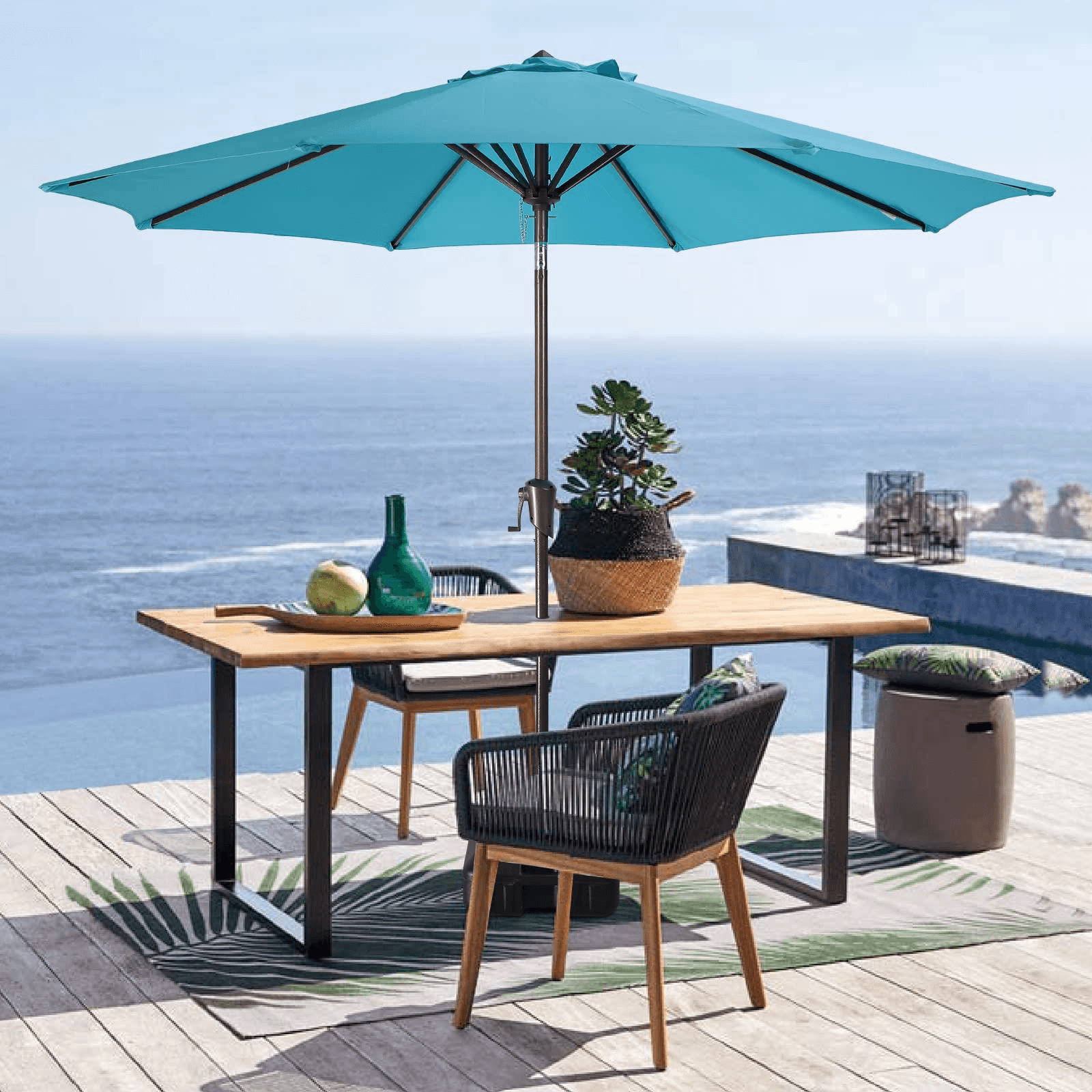Summer is just around the corner for some of us and nothing says suitable to enjoy a relaxing afternoon outdoor like collocating a lovely 9ft patio umbrella. This patio umbrella boasts a heavy-duty steel pole and 8 ribs, which are sturdy and durable. Features functional design such as tilt mechanism and crank system allowing to adjust the outdoor sun umbrella to the perfect angle. The wind-vent at the top of polyester canopy helps add stability. Ideal for multiple outdoor occasions.