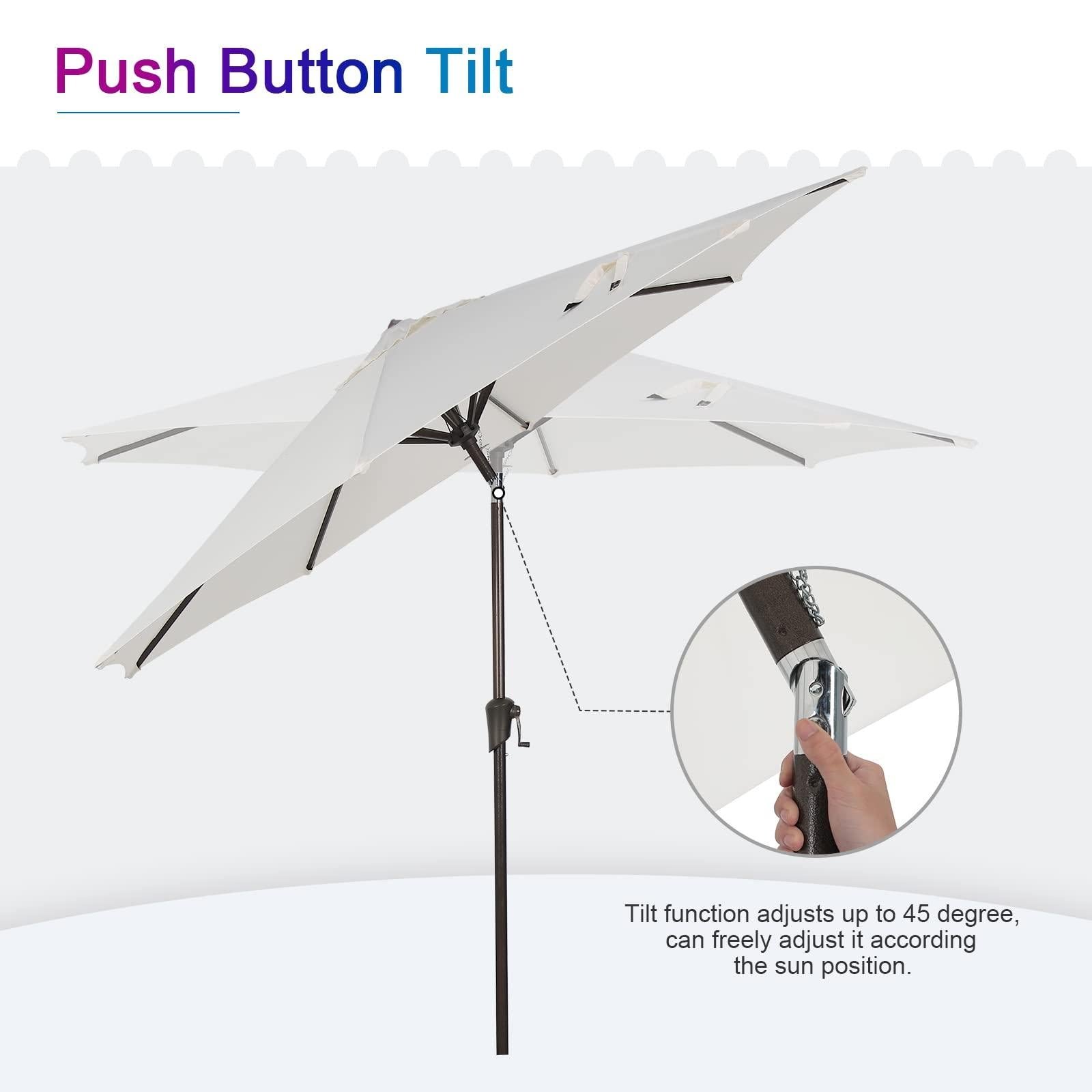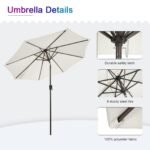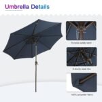 9ft Patio Umbrella with LED Lights Polyester Umbrella with Tilt and Crank, 3 Colors