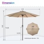 - 9 Feet Diameter-This patio umbrella is wide enough to shade your 60″ round, square, or rectangle table with 6 to 8 chairs. Ideal for both commercial and residential locations such as markets, restaurants, porch, decks, yards, balconies, pools, and any other outdoor areas