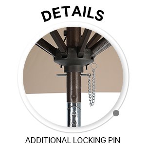 There are two locations of the patio umbrella to insert the locking pin, which is designed for double safety. |