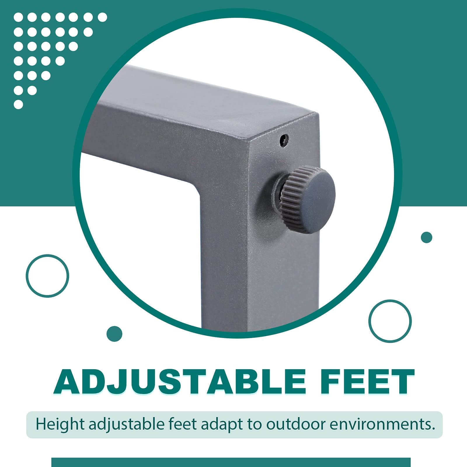 - SAFETY PATTERN-Cushions can be fixed to the ottoman by tying it with the hook-and-loop fastener, which prevents them from falling off by the wind. Height adjusters for uneven surfaces that won’t mar your patio or deck.