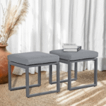 2pcs Outdoor Patio Ottomans, Aluminum Footstool, Dark Grey