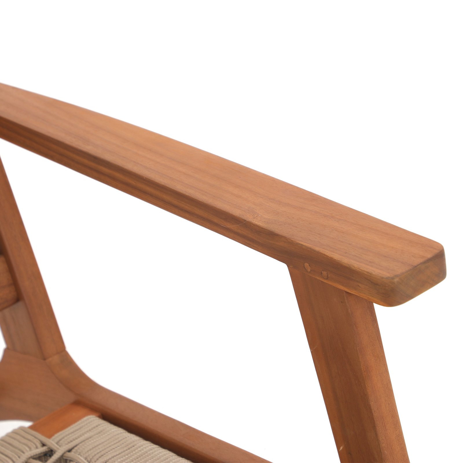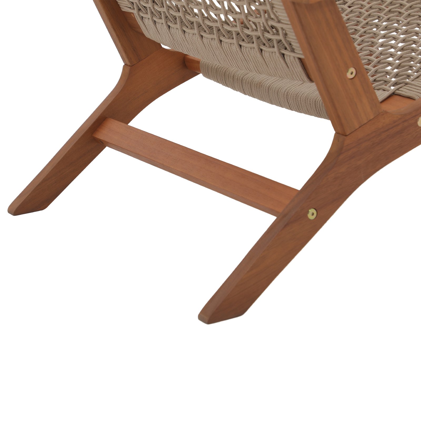 2pcs Wood Patio Lounge Chairs Modern Acacia Wood Accent Armchair with Handwoven Rope