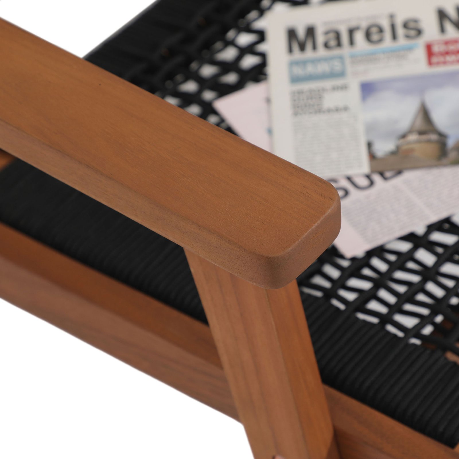 2pcs Folding Patio Dining Chairs, Outdoor Acacia Wooden Rope Reclining Chair w/Armrest